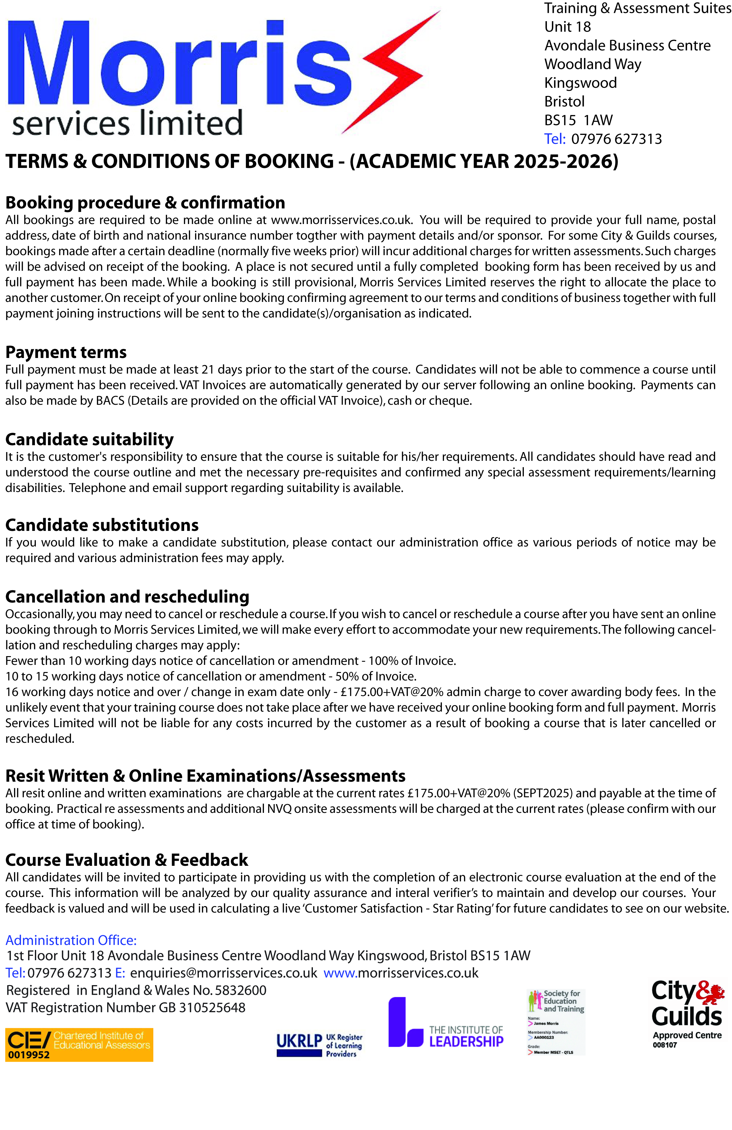 Morris Services Limited Terms & Conditions of Business for Academic Year 2025 TO 2026
